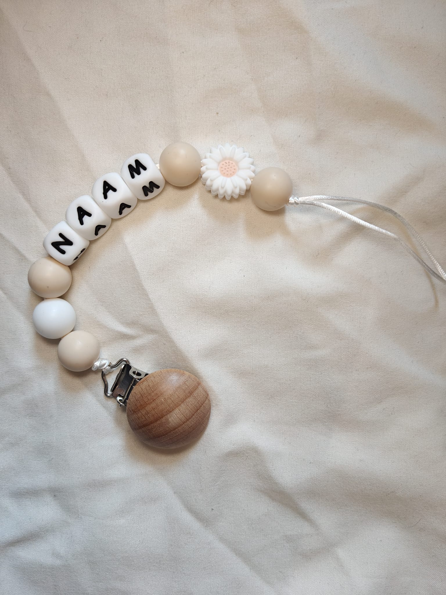 Gepersonaliseerde speenkoord- Wit beige-Bloem,
