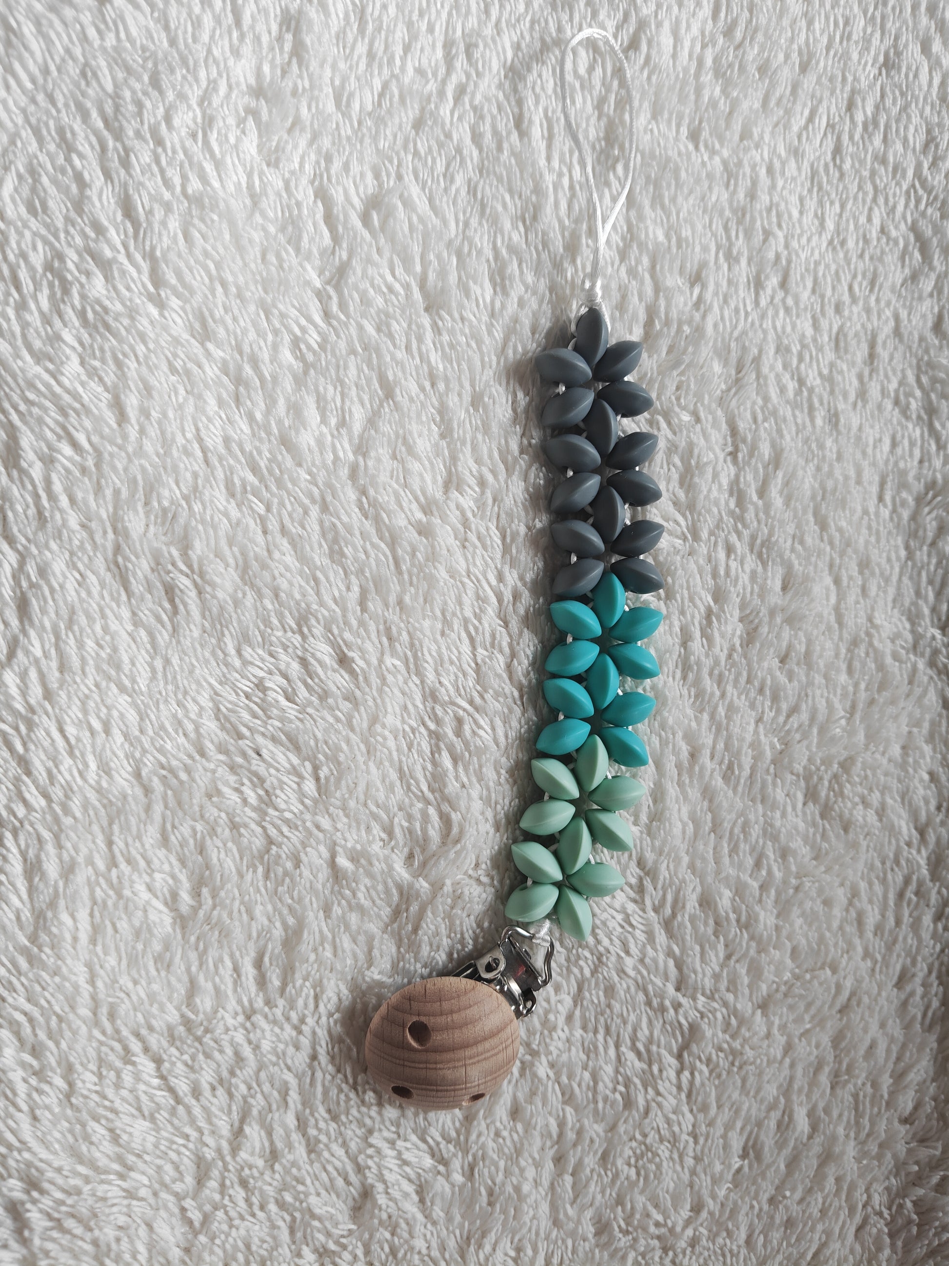Dit unieke speenkoord is gemaakt van prachtige bladvormige siliconen kralen . Het stijlvolle ontwerp is niet alleen praktisch, maar ook een echte eyecatcher bij elke outfit of kinderwagen.