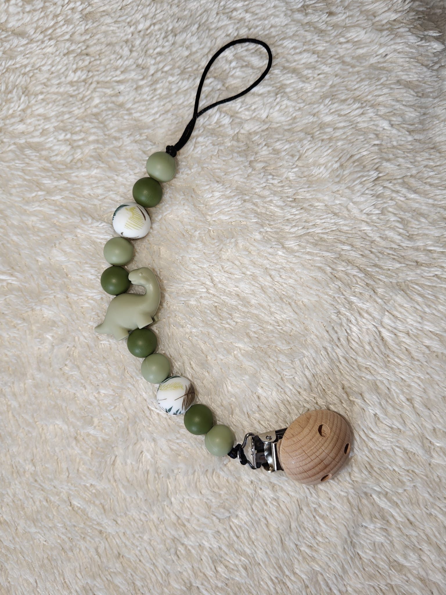 Voor alle kleine avonturiers! Dit stoere speenkoord met dino is niet alleen handig, maar ook super leuk om te zien. Met de zachte groentinten en speelse kralen heeft jouw kindje altijd een eyecatcher bij zich én blijft de speen schoon en binnen handbereik.