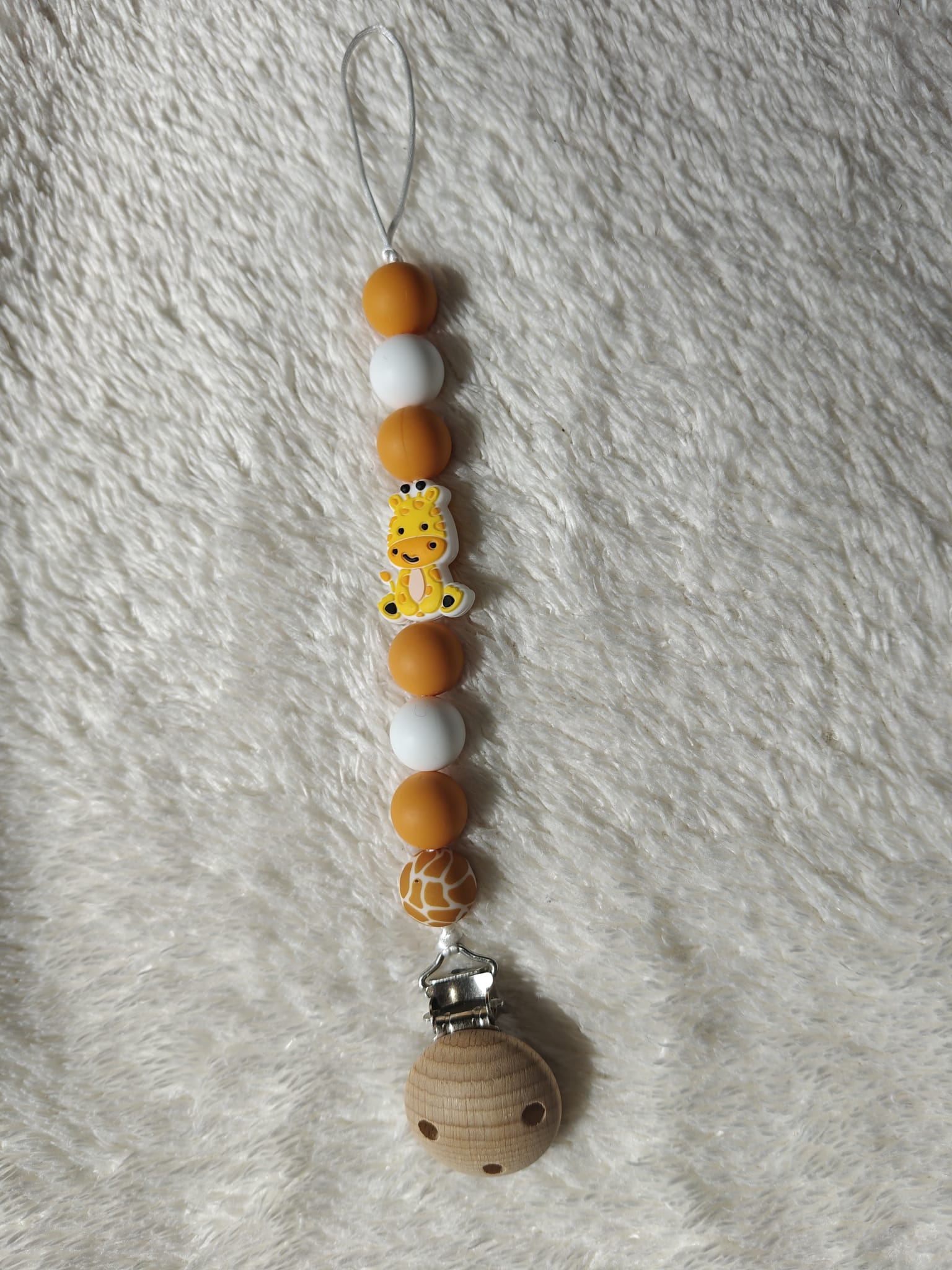 Dit speenkoord met giraf is een echte blikvanger voor jouw kleintje. Met de warme geel-witte kleuren en de vrolijke girafhanger krijgt dit speenkoord een speelse en lieve uitstraling. Het koord is voorzien van ronde kralen en een kralenpatroon dat perfect aansluit bij het thema.