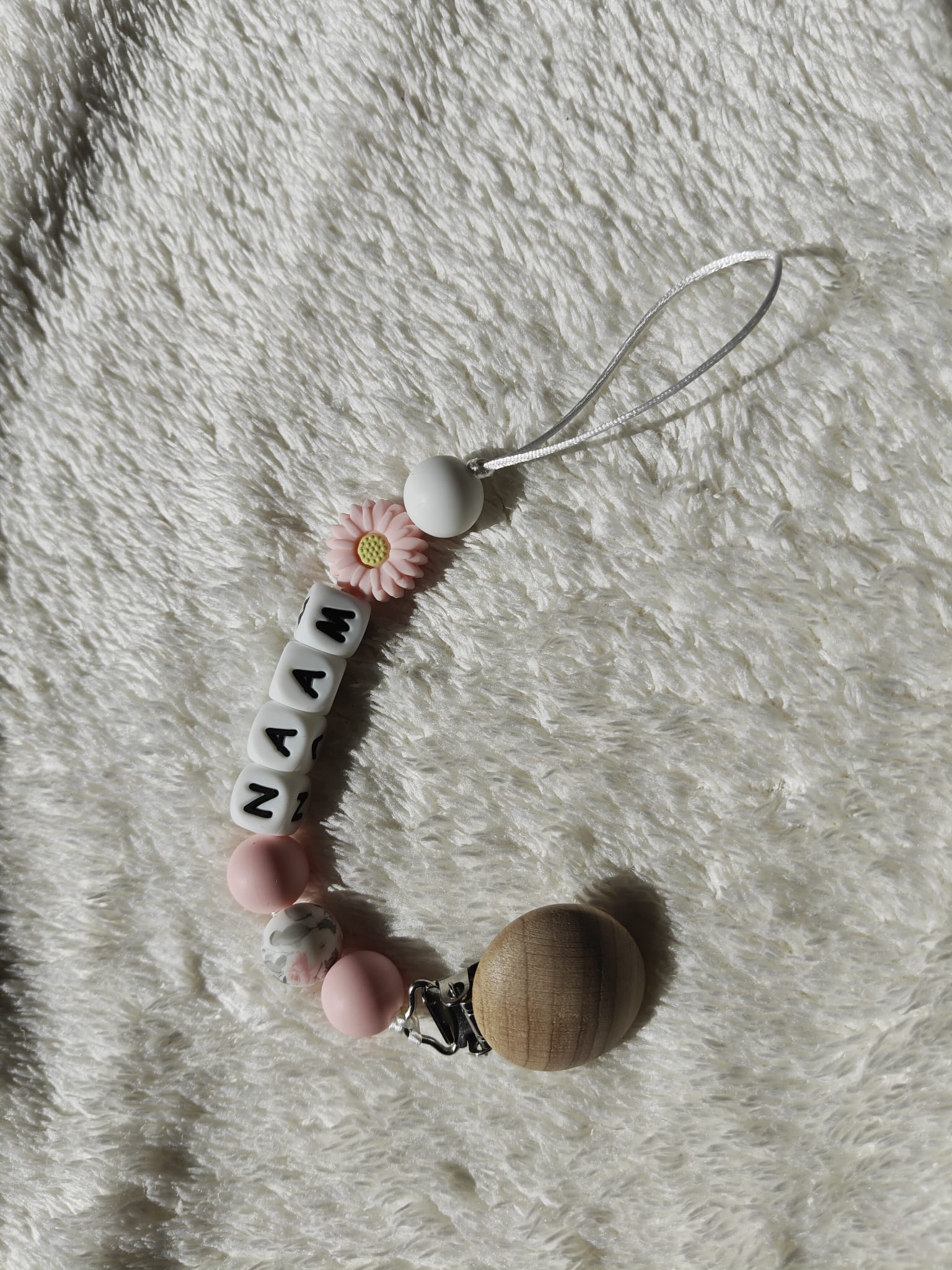 Met dit speenkoord heb je altijd een stijlvol en persoonlijk item bij de hand – praktisch, lief en uniek voor jouw kindje.